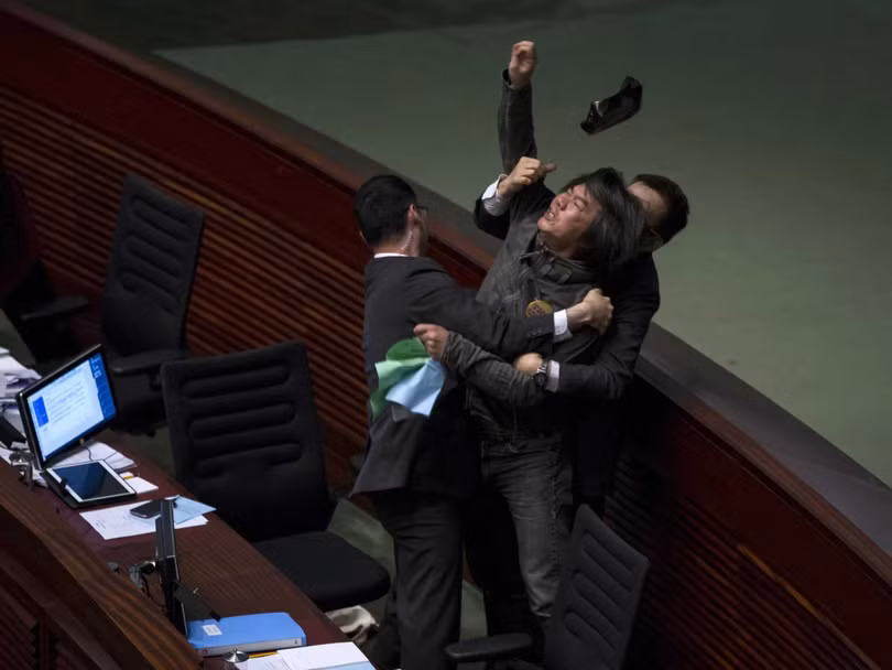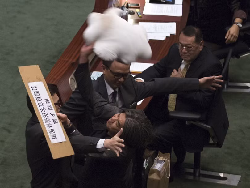 Cảnh hỗn chiến xảy ra như cơm bữa ở nghị viện Hong Kong