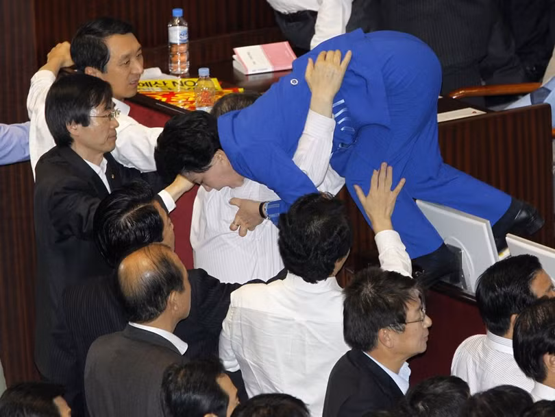 Nữ nghị sĩ Hàn Quốc chạy trốn khỏi cuộc ẩu đả