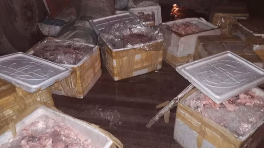 Tối 14-1, Trạm CSGT Thăng Bình – Phòng CSGT Công an tỉnh Quảng Nam, cho biết vừa phát hiện 2 xe tải vận chuyển 3,5 tấn thịt, nội tạng, mỡ động vật không rõ nguồn gốc, đã bốc mùi hôi thối.