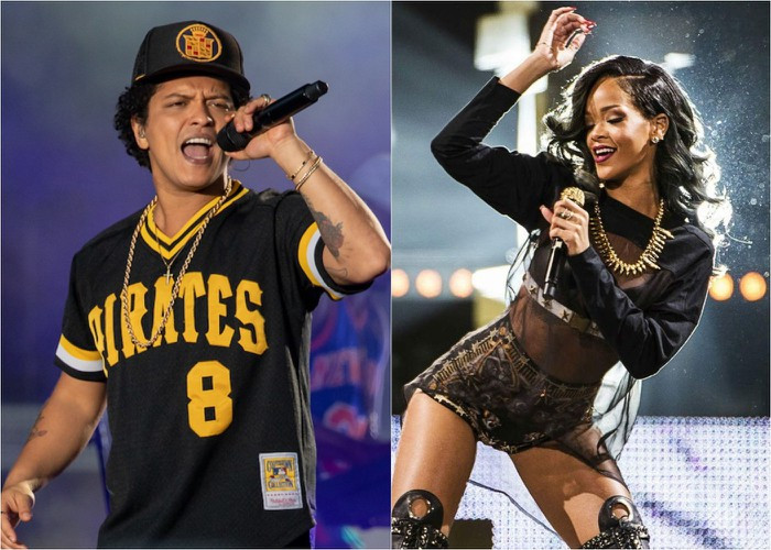 Theo một thống kê năm 2015, Bruno Mars và Rihanna là 2 ca sĩ bị tải nhạc trái phép nhiều nhất trong lịch sử. Ảnh: Getty Images.