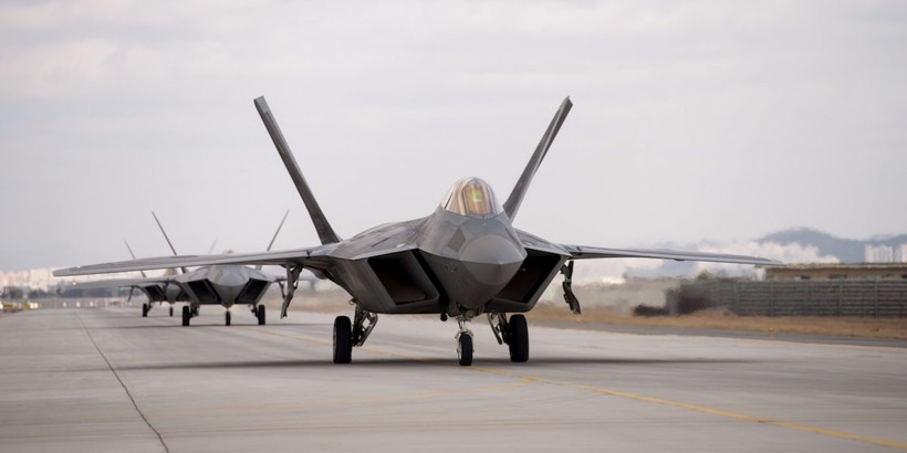 6 chiếc F-22 rất hiếm khi nhìn thấy ngoài lãnh thổ Mỹ và Nhật Bản, thêm sức mạnh cho cuộc tập trận.