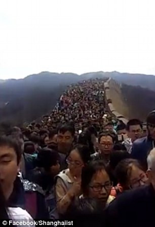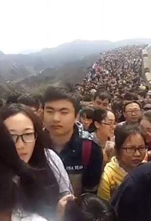 Đám đông người chen chân trên Vạn Lý trường thành...
