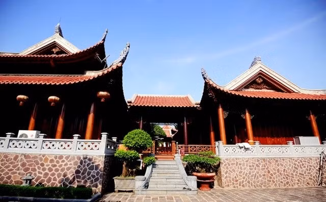 Nóc chạm trổ tinh tế hình rồng bay phượng múa. Bất kỳ một xà ngang, hay bậc cửa đều có các họa tiết, từ "long, ly, quy, phụng" hoặc "tùng, cúc, trúc, mai" hay đủ loại chim thú, hoa lá cỏ cây.