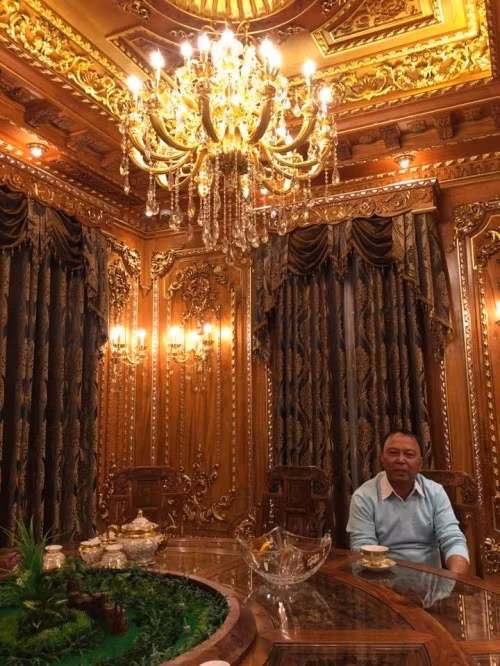 Chủ nhân của căn biệt thự hoàng tráng dát vàng này khởi nghiệp từ buôn bán phế liệu cách đây hơn 10 năm rồi sau đó mở rộng ngành nghề kinh doanh.