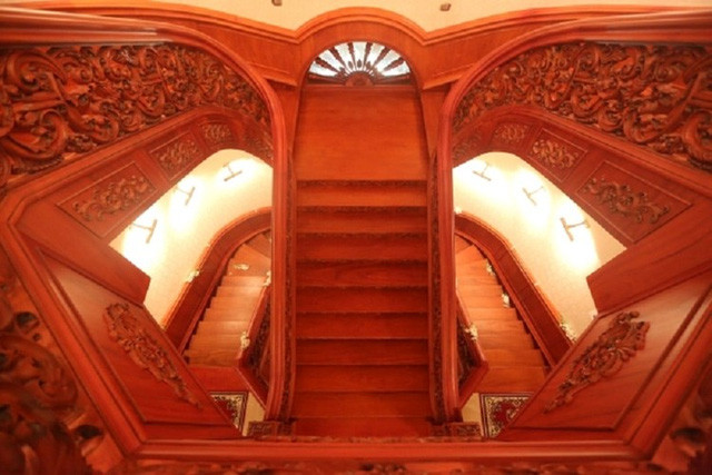 Với nội thất chủ đạo bằng loại gỗ gõ đỏ quý hiếm được thiết kế từ trên xuống dưới đã tạo nên sự sang trọng và đẳng cấp cho gia chủ. Bên trong ngôi nhà, những đồ vật và các kết cấu trang trí được thiết kế một cách tinh sảo, bắt mắt.