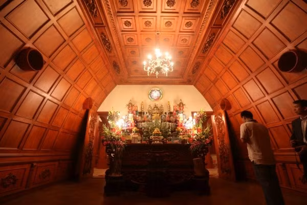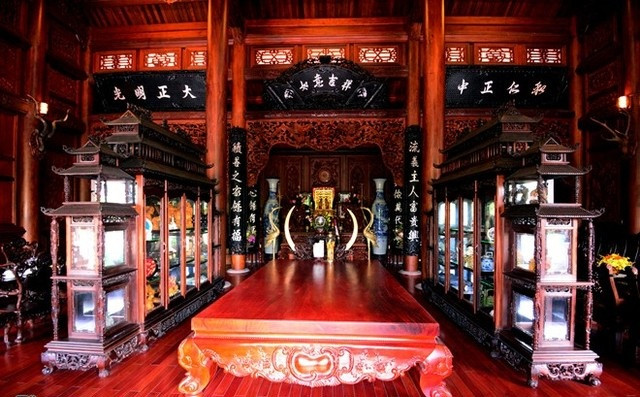 Để có được sự hoàn mỹ, gia chủ đã không ngần ngại bỏ thêm hàng tỷ đồng để thiết kế lắp đặt hệ thống đèn cao cấp để làm nổi bật các chi tiết tinh xảo của trần nhà, tường hay các hoa văn được chế tác từ gỗ quý.