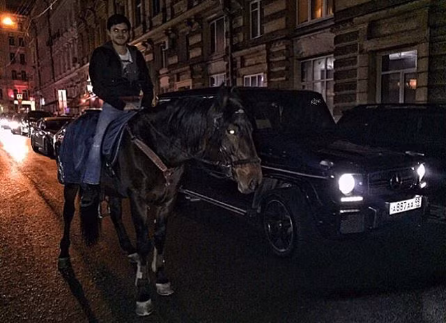 Chán đi ô tô, một thiếu gia Nga chơi trội bằng cách cưỡi ngựa ra đường.