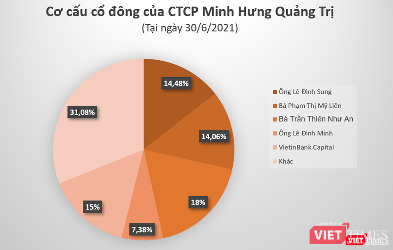 Trong nửa đầu năm 2021, ông Lê Đình Sung và phu nhân Phạm Thị Mỹ Liên đã bán ra lượng lớn cổ phần Minh Hưng Quảng Trị, giảm tỉ lệ sở hữu xuống chỉ còn 28,54%.