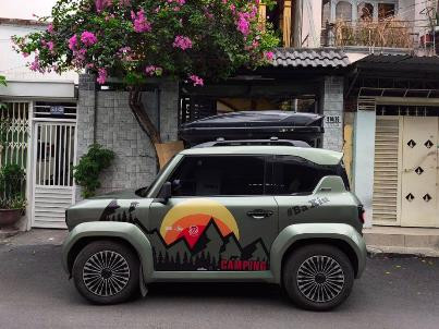 Tại TP.HCM, chiếc VinFast VF 3 được độ theo phong cách dã ngoại - adventure với lớp sơn xanh quân đội và bộ tem đồ họa chủ đề camping, mô phỏng cảnh rừng núi. Xe được trang bị hộp đựng đồ nóc lớn, tăng khả năng chứa đồ cho những chuyến đi xa. Bộ mâm đa chấu thiết kế mới giúp xe thêm phần thể thao. Bản độ này biến VF 3 thành chiếc xe đa dụng, cá tính, sẵn sàng cho mọi hành trình khám phá.