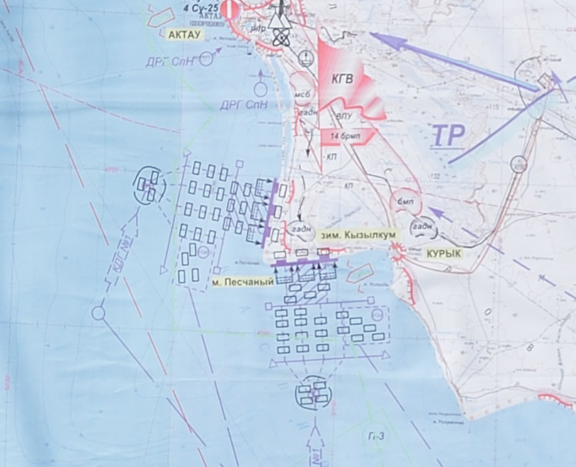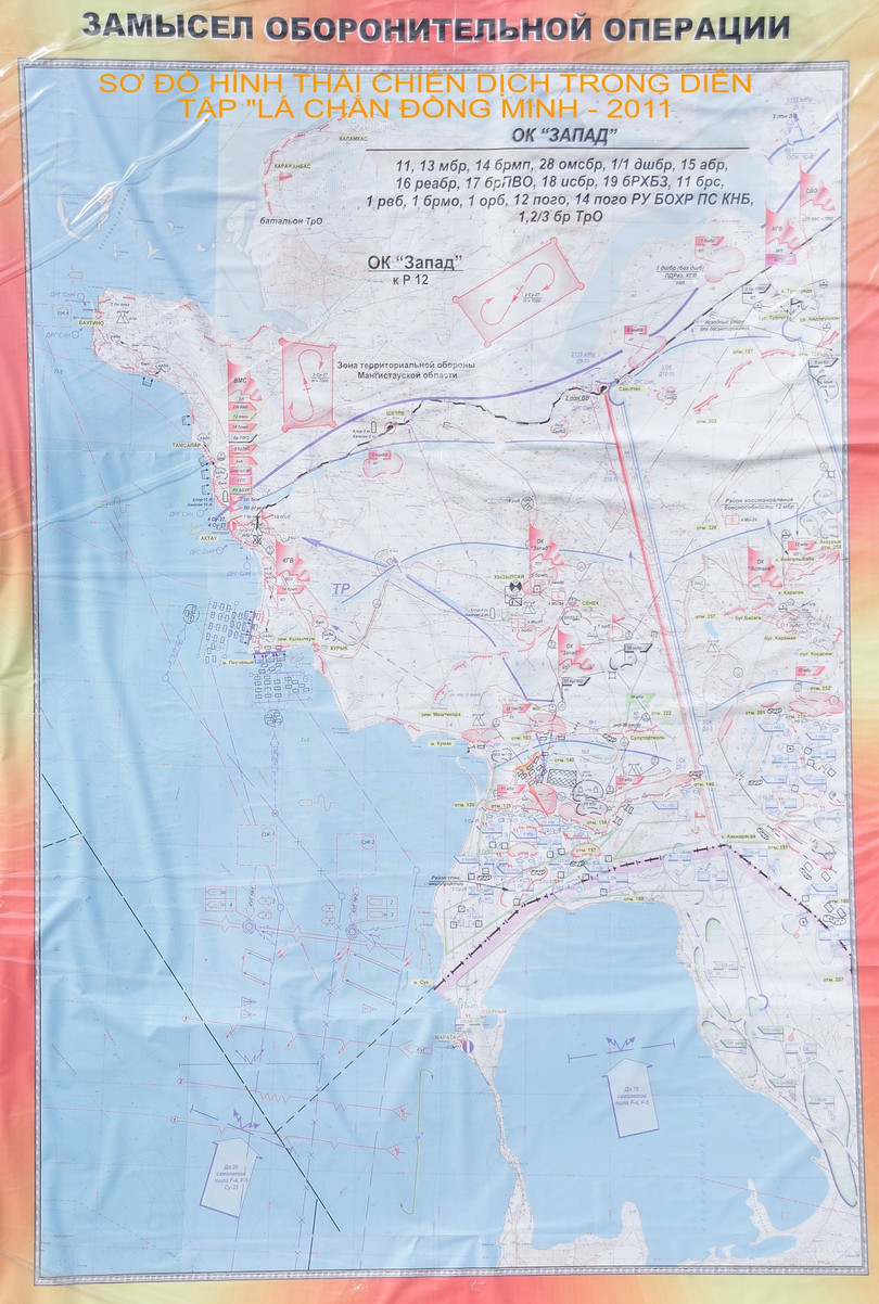Bản đồ dự kiến đổ bộ của lực lượng thù địch trong cuộc diễn tập Lá chắn đồng minh - 2011 của Nga và Khazastan năm 2011