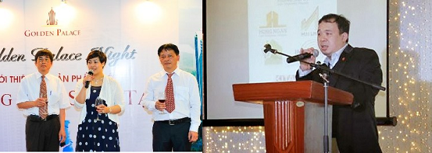Hình ảnh bà Nguyễn Thị Minh Hồng trong buổi ra mắt dự án Golden Palace và ông Trần Đăng Khoa.