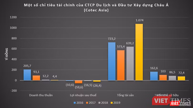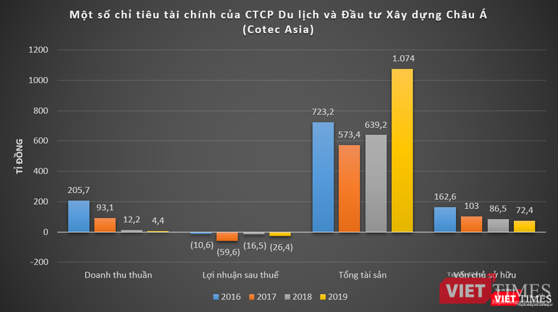 Về tình hình kinh doanh, dữ liệu của VietTimes cho thấy, trong giai đoạn 2016 - 2019, Cotec Asia liên tục báo lỗ, đồng thời chỉ tiêu doanh thu có xu hướng giảm dần qua các năm.