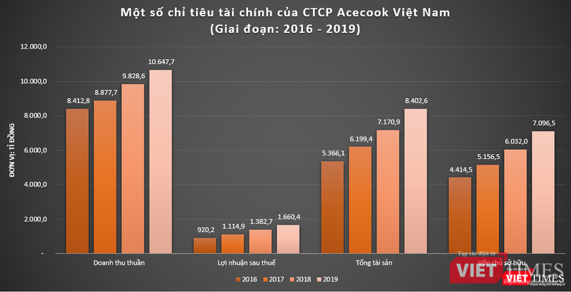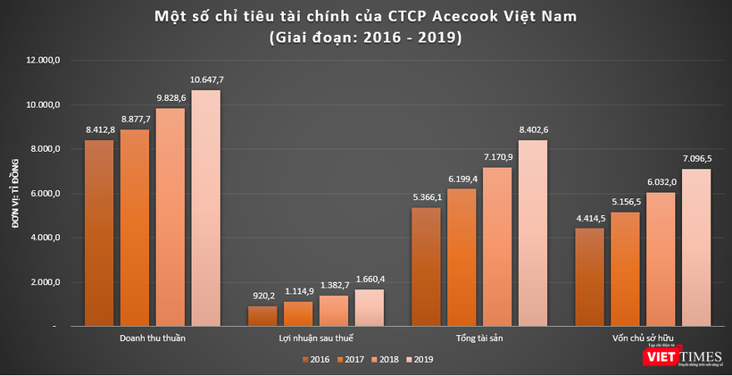 Dù vốn điều lệ chỉ chưa đầy 300 tỉ đồng nhưng vốn chủ sở hữu thực tế của Vina Acecook lại cao gấp cả chục lần. Tại ngày 31/12/2019, vốn chủ sở hữu lên đến 7.096 tỉ đồng và tổng tài sản hơn 8.420 tỉ đồng, cho thấy tiềm lực khổng lồ của Vina Acecook.