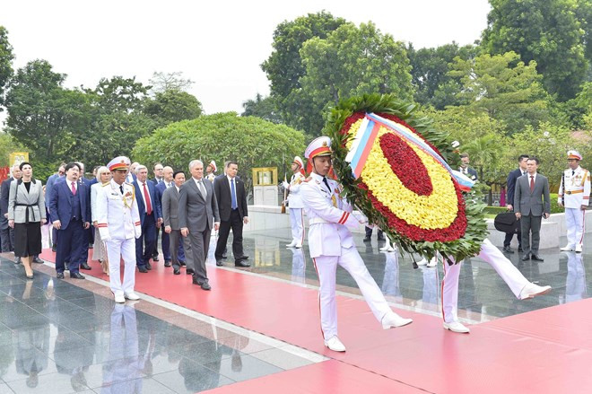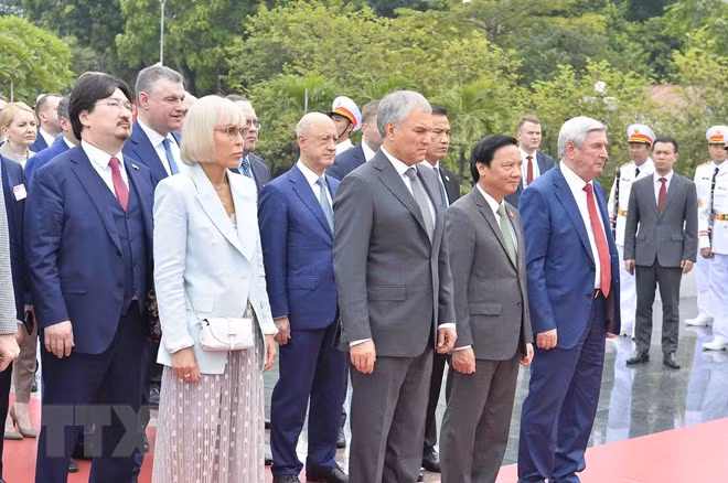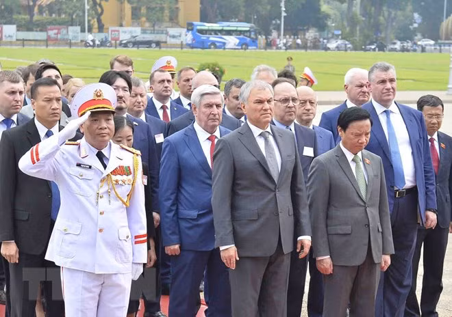 Trong khuôn khổ chuyến thăm chính thức Việt Nam, sáng cùng ngày, Chủ tịch Duma Quốc gia Quốc hội Liên bang Nga Vyacheslav Vichtorovich Volodin dẫn đầu Đoàn đại biểu cấp cao Liên bang Nga đã đến đặt vòng hoa và vào Lăng viếng Chủ tịch Hồ Chí Minh; đặt vòng hoa tưởng niệm các Anh hùng liệt sỹ tại Đài tưởng niệm các Anh hùng liệt sỹ trên đường Bắc Sơn (Ba Đình, Hà Nội)./.