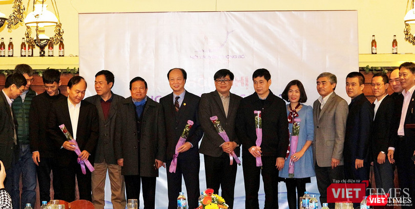 | Chủ tịch Hội (người ngoài cùng bên phải) tặng hoa chúc mừng ông Nguyễn Đình Thắng (thứ hai trái sang), ông Nguyễn Thành Phúc (thứ tư trái sang), ông Phạm Gia Khải, ông Hoàng Bảo Hùng và bà Nguyễn Thị Bích Lan trúng cử trong đợt bầu bổ sung lần này. |