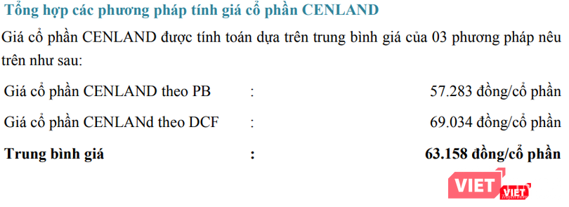 Mức giá trung bình thu được từ các phương pháp định giá trên là 63.158 đồng/cổ phần. Tuy nhiên, căn cứ vào tình hình thị trường, ban lãnh đạo của CRE đã lựa chọn mức giá tham chiếu trong ngày giao dịch đầu tiên là 50.000 đồng/cổ phần.