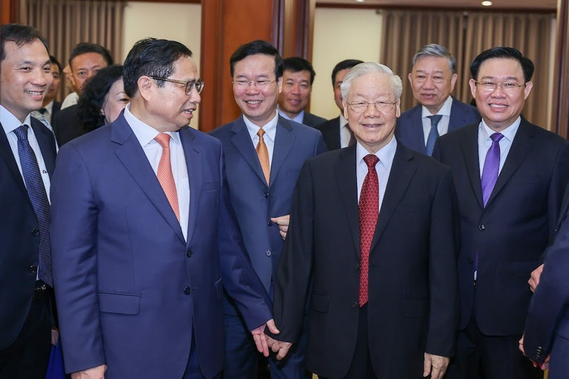 Tổng Bí thư Nguyễn Phú Trọng phát biểu bế mạc Hội nghị Trung ương 7 khóa XIII (Hội nghị Trung ương giữa nhiệm kỳ) - Ảnh: VGP/Nhật Bắc