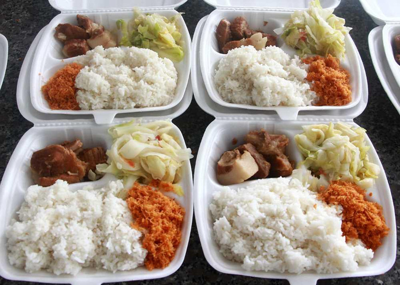 | Các suất ăn được đóng trong hộp xốp, đầy đủ cơm, rau xanh, canh, thịt, cá… và được thay đổi thực đơn theo ngày. |