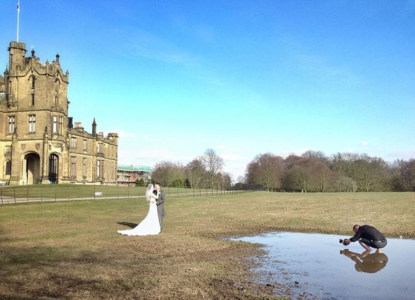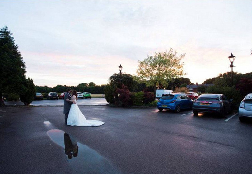 Chùm ảnh này đều có bóng cô dâu chú rể dưới nước, để có được chúng, nhiếp ảnh gia đã phải nằm sát xuống đất hoặc đứng trong vũng nước bẩn để chụp. Một nhiếp ảnh gia nói, một vũng nước bình thường có thể là một trong những bối cảnh đẹp nhất để chụp ảnh cưới, sau khi xử lý sẽ đạt tới hiệu quả không thể ngờ.