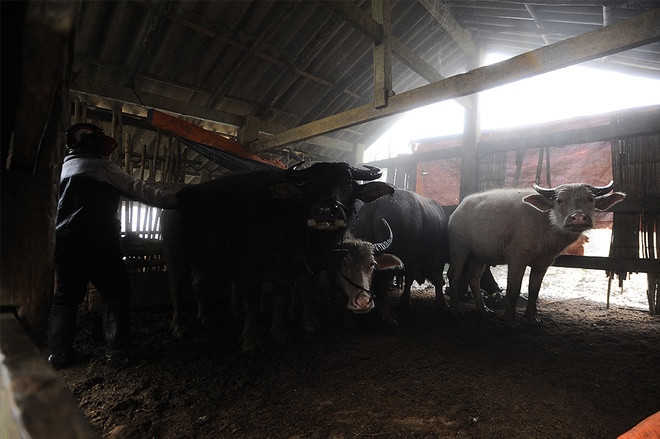 Gia đình anh Chảo Dào Tá, bản Khoang, xã Can Hồ B (Sa Pa, Lào Cai) có 6 con trâu. Anh lùa về chuồng, che chắn cẩn thận để tránh giá rét. Mỗi đợt tuyết rơi, hàng chục trâu bò chết vì cước chân khiến nhiều gia đình thiệt hại nặng về kinh tế.