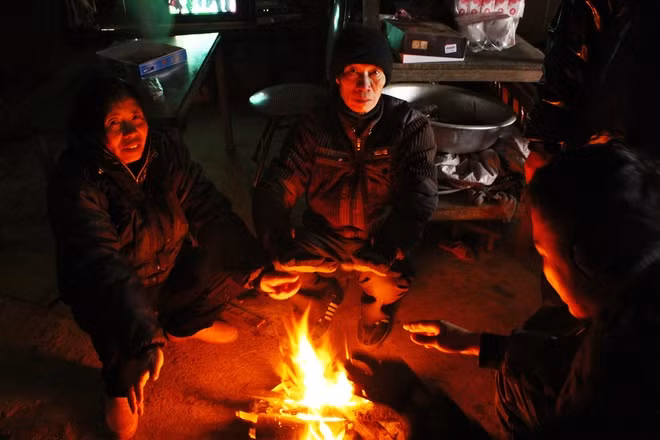 Hạn chế ra ngoài, ngồi quây quần bên đống lửa là cách chống rét thông dụng của nhiều người dân Y Tý (huyện Bát Xát).