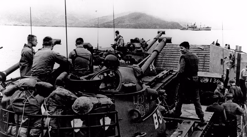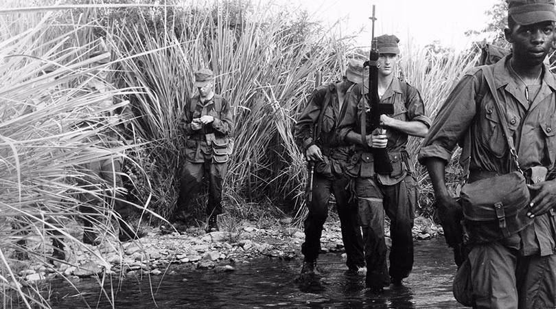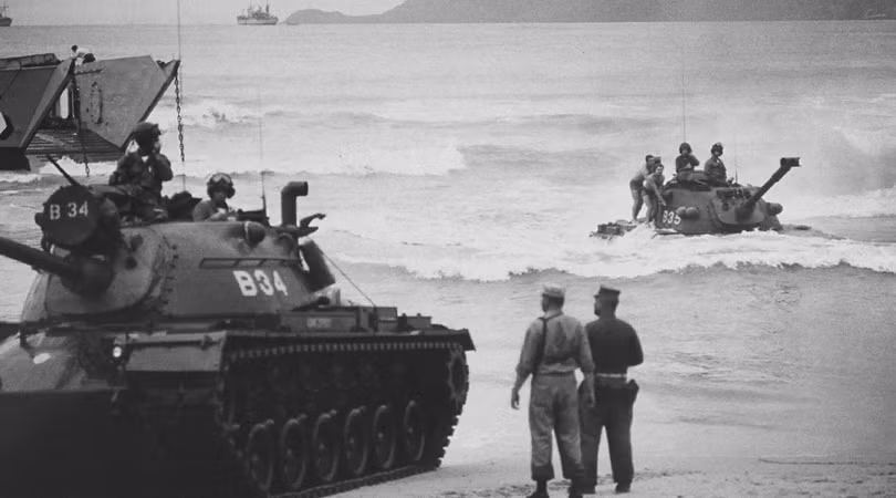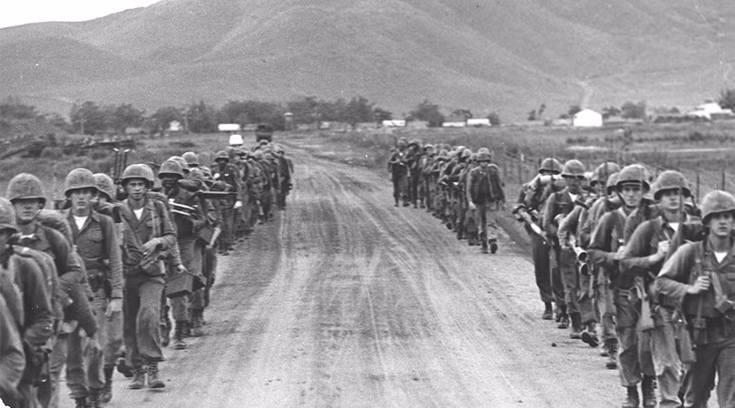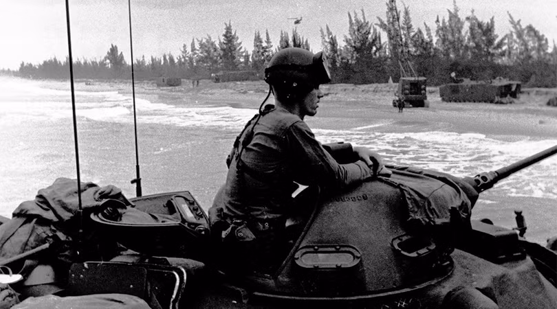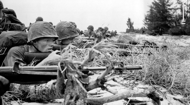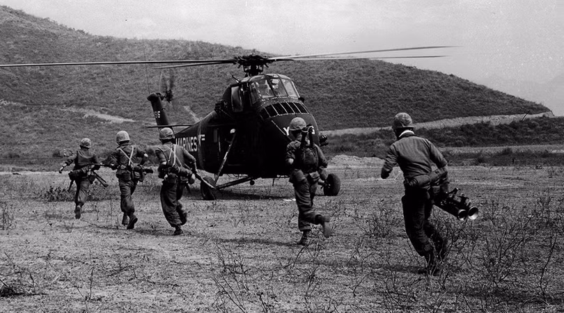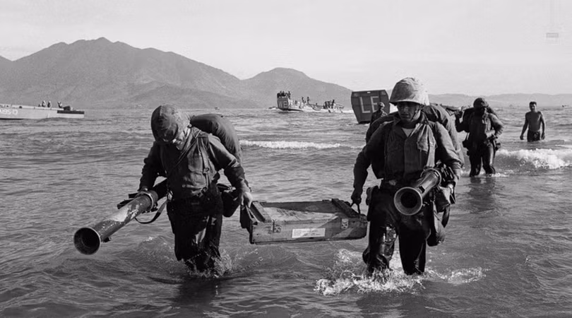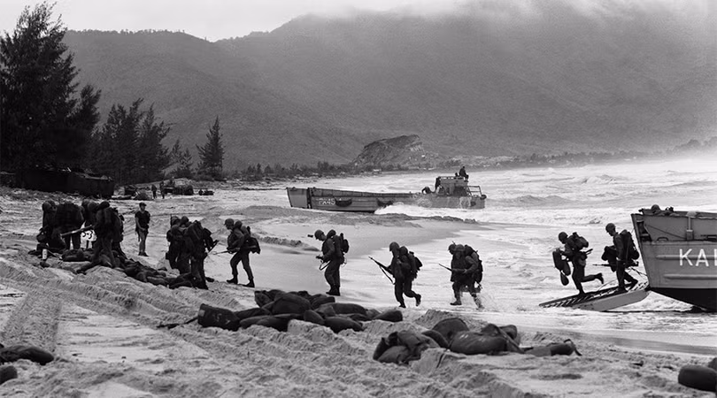 Cố vấn quân sự Mỹ và lực lượng không quân đã tham chiến tại Việt Nam nhiều năm, hỗ trợ cho lực lượng quân sự chính quyền Sài Gòn. Triển khai thủy quân lục chiến tại Đà Nẵng ngày 08.03.1965, đánh dấu giai đoạn mới của cuộc xung đột, chuyển hóa thành chiến tranh cục bộ với sự tham gia ngày càng tăng lực lượng quân đội Mỹ trên chiến trường. (Ảnh: USMC)