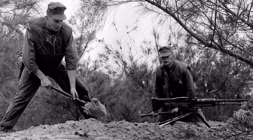 Hai binh sĩ Mỹ đào đặp trận địa súng máy M60 (USMC)