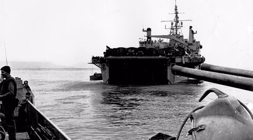 Các xe thiết giáp cũng đổ bộ tự hành từ tàu đổ bộ hạng nặng