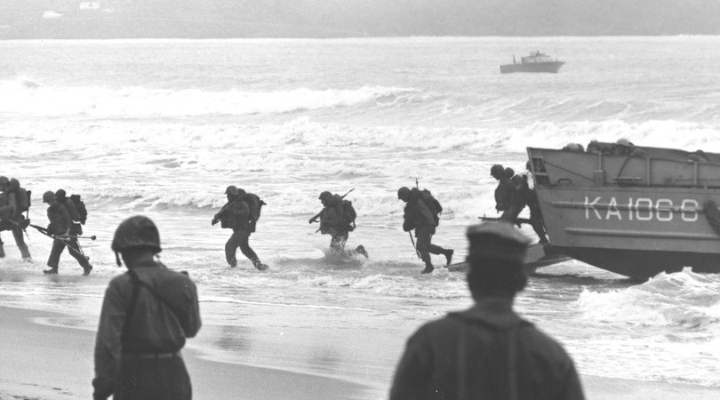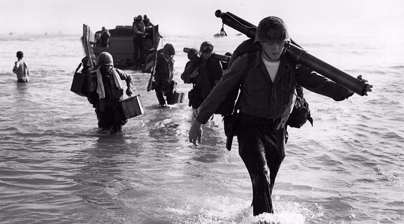 Một góc quan sát lực lượng lính thủy đánh bộ Mỹ đổ bộ lên bờ biển (USMC)