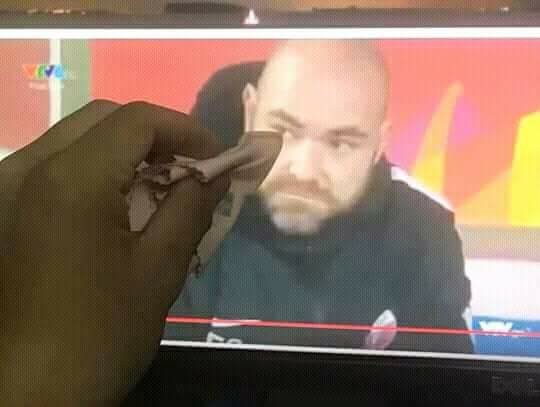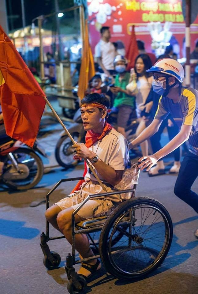 Hình ảnh hài hước của 1 cổ động viên Việt Nam nhưng đậm tính nhân văn.