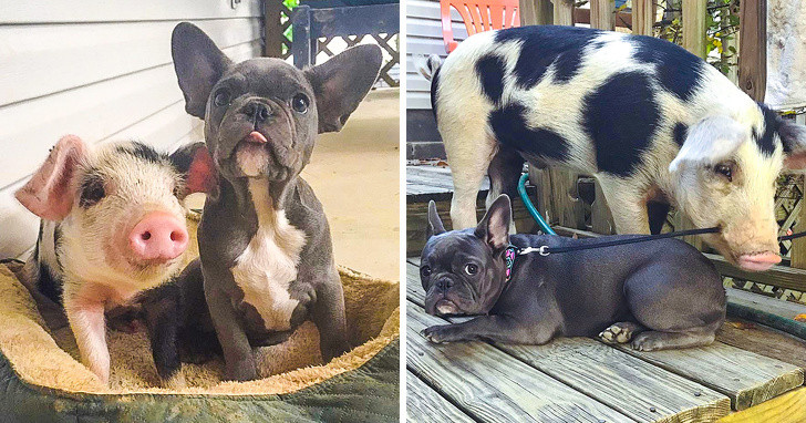 1. Gặp gỡ Peanut và Keeva, một chú heo con và một chú chó con, cả hai đã lớn và vẫn thân thiết với nhau như ngày nào