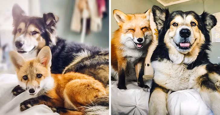 9. Ai mà đoán được, một chú chó và chú chồn lại có thể thân thiết với nhau đến như vậy!