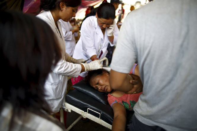 Tại bệnh viện chính ở Kathmandu, các bác sĩ, y tá đồng loạt đưa những bệnh nhân bị thương ngày 25-4 ra ngoài bằng xe lăn để tránh nguy cơ thương vong. Cả thủ đô Nepal tràn ngập sự hoảng loạn, nhiều người cuống cuồng gọi điện cho người thân để kiểm tra xem họ có an toàn không.