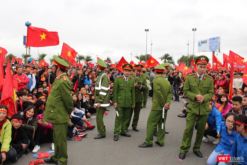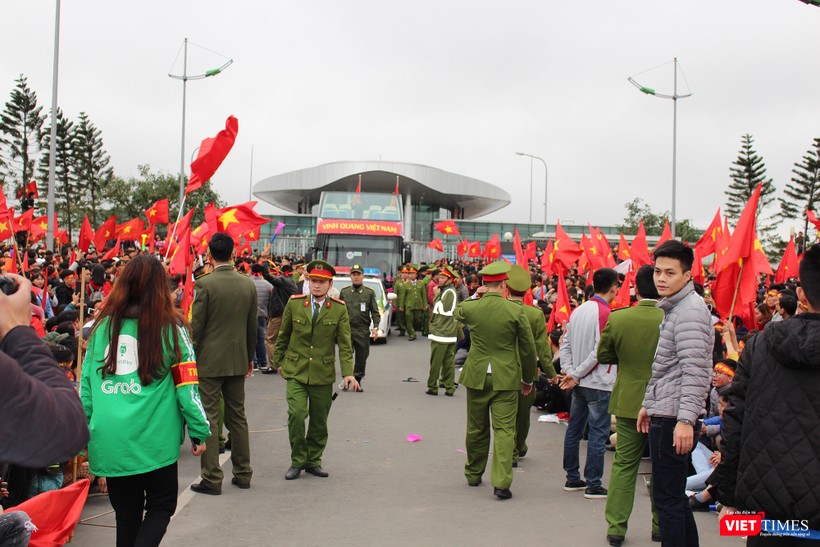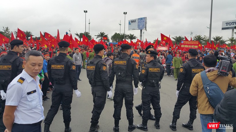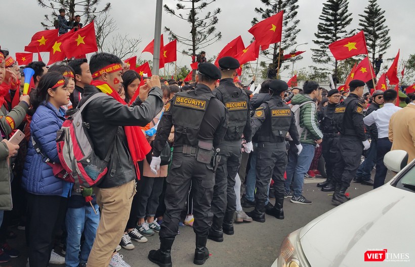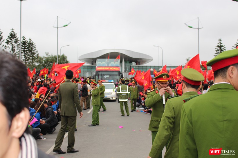VietTimes -- Sự cuồng nhiệt của các cổ động viên tại sân bay Nội Bài hôm nay đã khiến cho lực lượng an ninh có một ngày hoạt động khá vất vả. Dưới đây là chùm ảnh về lực lượng giữ gìn trật tự tại sân bay.