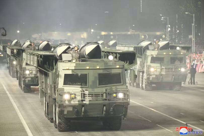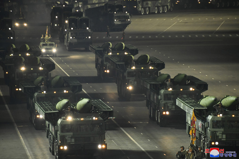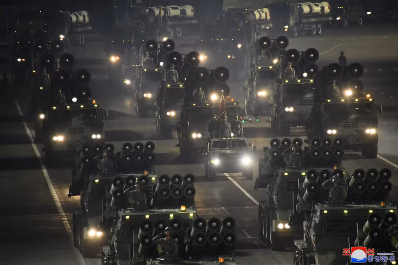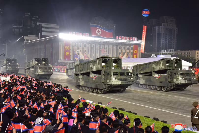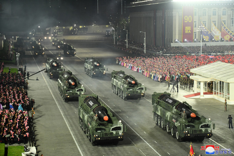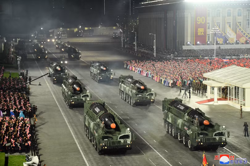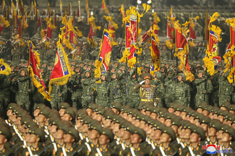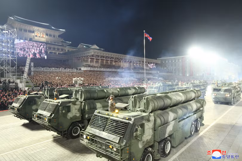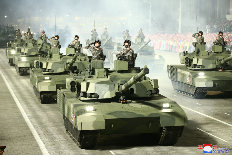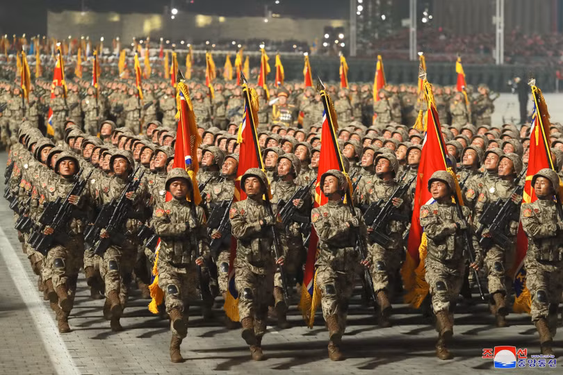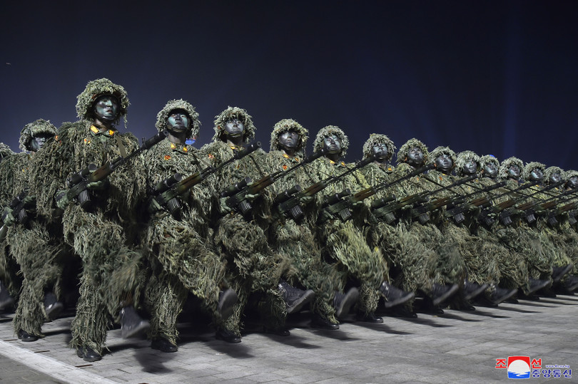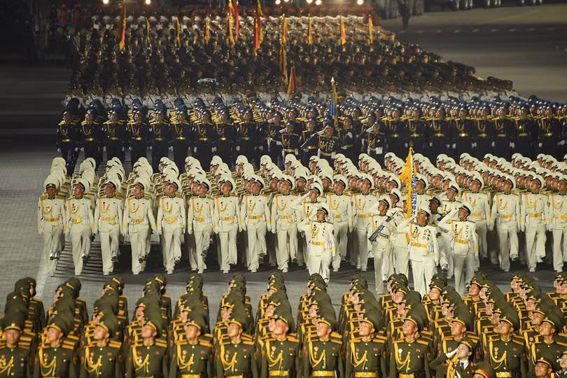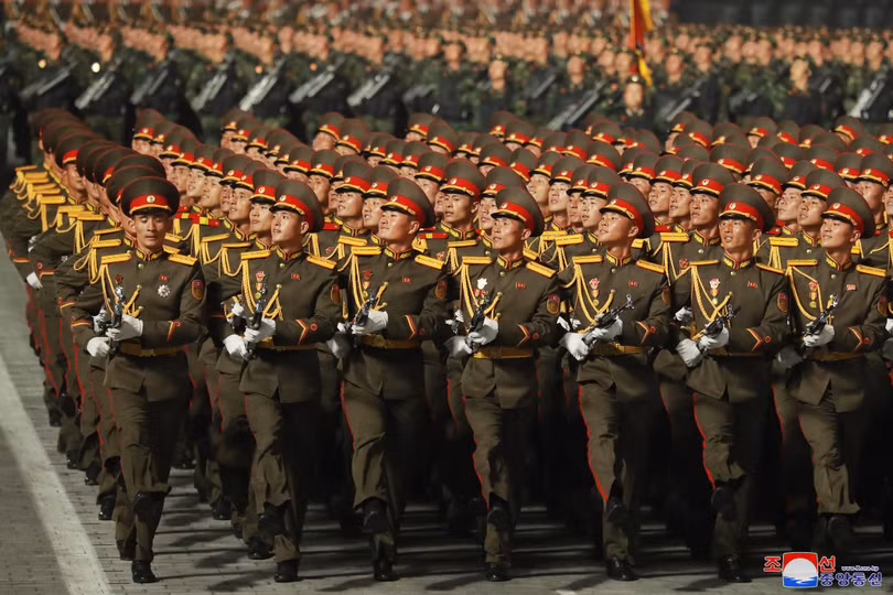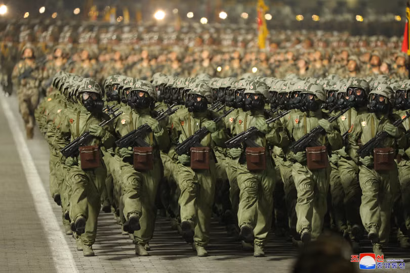 Các lực lượng quân đội tham gia Lễ duyệt binh được tổ chức nhân dịp kỷ niệm 90 năm ngày thành lập Quận đội Nhân dân Triều Tiên vào tháng 4/2022.