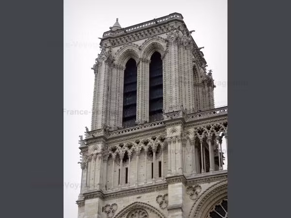 | Tháp cao nhất của nhà thờ, tòa tháp này vừa bị phá hủy trong trận hỏa hoạn đêm 15/4 |