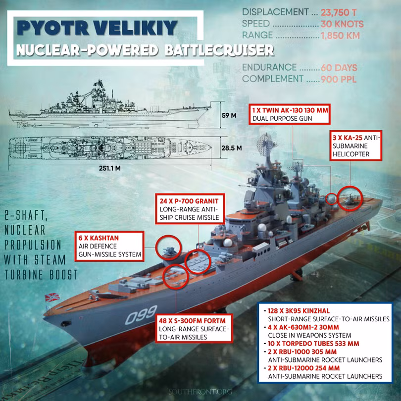 Tàu tuần dương tên lửa nguyên tử Peter Velikiy được trang bị: