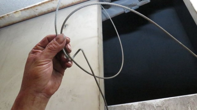 Dây cáp kéo thang máy bị đứt vẫn còn nguyên ở hiện trường - Ảnh: Quang Thế
