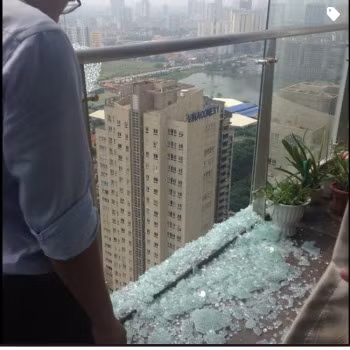 Và trong khi Xí nghiệp vận hành tòa nhà còn chưa thống nhất được giải pháp với đại diện cư dân thì chiều 30/9, lại tiếp diễn thêm 1 vụ kính tòa A Thăng Long Number one rơi khiến cư dân không khỏi lo lắng.