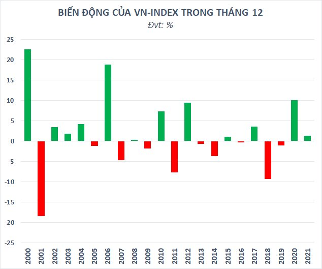 Thống kê chỉ mang tính chất tham khảo và thực tế không có mối liên hệ nào rõ ràng giữa chứng khoán Việt Nam và những ngày hội bóng đá lớn. Tuy nhiên, khá trùng hợp là World Cup 2022 lại diễn ra đúng vào giai đoạn tương đối dễ thở của TTCK Việt Nam. Trong 22 năm qua, VN-Index có 12 lần tăng điểm trong tháng cuối cùng của năm với nhiều lần tăng mạnh trên 10%. 2 năm gần nhất, chỉ số quan trọng này đều tăng trong tháng 12.