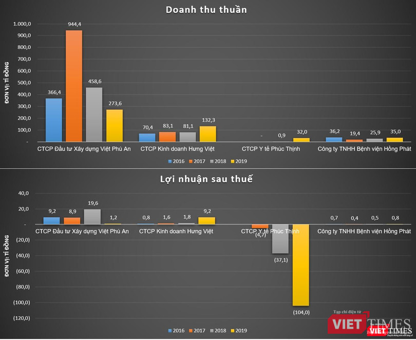 Trong khi đó, Công ty TNHH Bệnh viện Hồng Phát đã âm vốn chủ sở hữu trong suốt giai đoạn 2016 – 2019, cùng kết quả kinh doanh không mấy nổi bật.