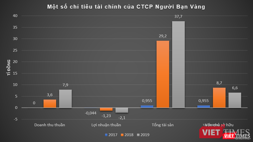 Về hoạt động kinh doanh, Người Bạn Vàng (công ty mẹ) báo lỗ liên tiếp trong giai đoạn 2017 - 2019. Riêng trong năm 2019, công ty này ghi nhận doanh thu thuần đạt 7,9 tỉ đồng, báo lỗ thuần ở mức 2,1 tỉ đồng.