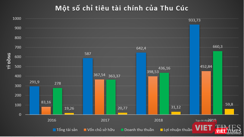 Tính đến cuối năm 2019, tổng tài sản của Thu Cúc đạt 933,73 tỷ đồng, tăng 45% so với thời điểm đầu năm; vốn chủ sở hữu tăng từ 398,53 tỷ đồng lên mức 452,84 tỷ đồng.