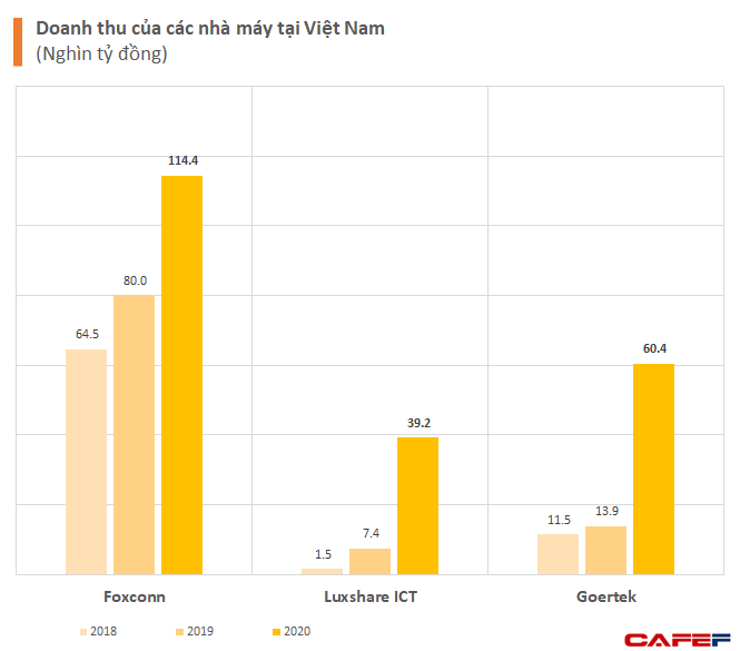 Năm 2020, các nhà cung ứng thiết bị lớn của Apple đã đồng loạt đầu tư thêm nhà máy hoặc mở rộng sản xuất tại Việt Nam, qua đó thúc đẩy hoạt động sản xuất và doanh thu tăng vọt.