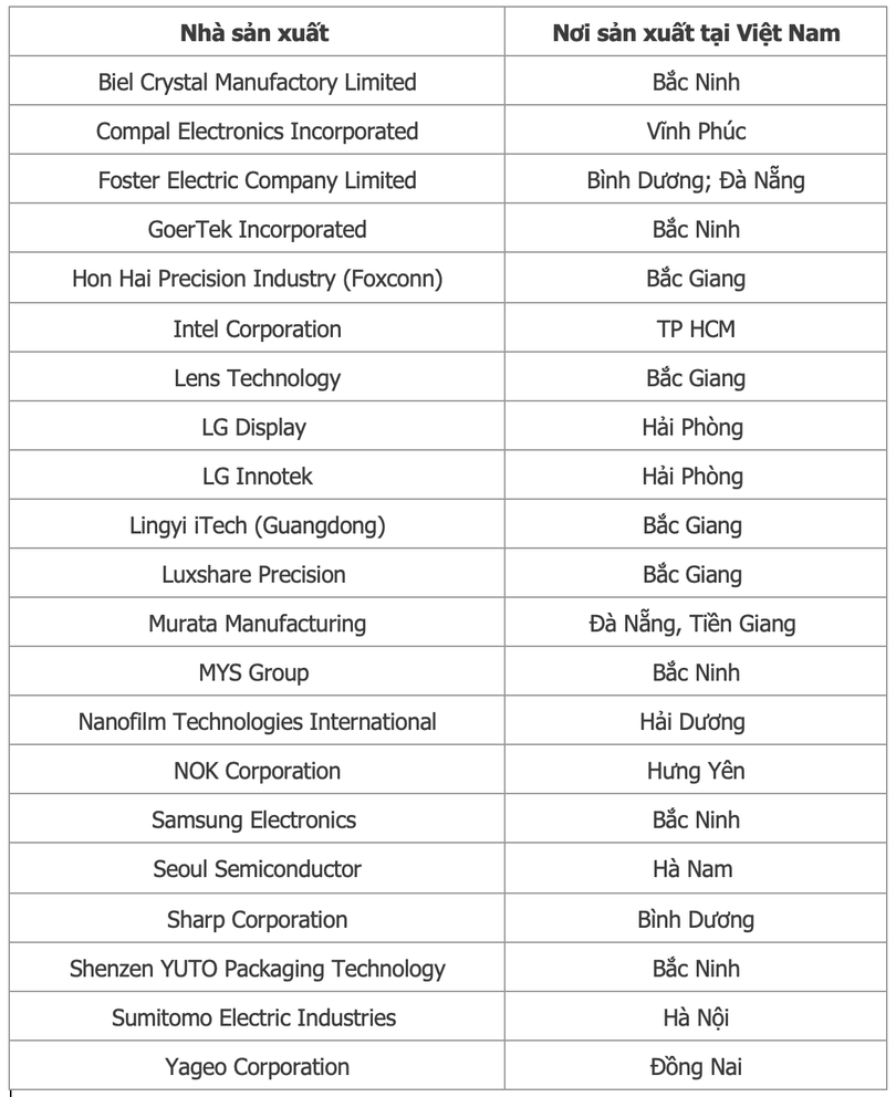 Theo tìm hiểm, Apple hiện có trên 20 nhà cung ứng thiết bị có nhà máy sản xuất đặt tại Việt Nam.