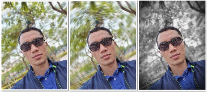 Các hiệu ứng không chỉ áp dụng cho camera sau mà còn áp dụng được trên camera trước. Người chụp chỉ cần chọn chế độ Live Focus khi chụp ảnh selfie, sau đó chọn các hiệu ứng phù hợp để áp dụng lên hình ảnh.