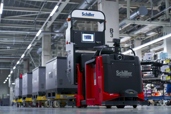 Các hệ thống vận tải tự động như tàu kéo hoặc robot vận tải thông minh ngày càng được sử dụng nhiều để vận chuyển hàng hóa trong các khu vực sản xuất.