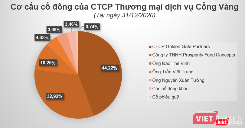 Trong đó, CTCP Golden Gate Partners (Golden Gate Partners) là cổ đông lớn nhất, với 3,37 triệu cổ phần, tương đương 44,22% vốn điều lệ. Thành lập từ tháng 6/2014, Golden Gate Partners có nhiều mối liên hệ với nhóm cổ đông sáng lập Golden Gate, do ông Trần Việt Trung đảm nhiệm vị trí Tổng giám đốc.
