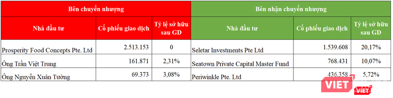 Theo đó, các nhà đầu tư ngoại là Seletar Investments Pte Ltd (một quỹ đầu tư có quan hệ mật thiết với Temasek Holdings), Seatown Private Capital Master Fund và Periwinkle Pte. Ltd sẽ mua tổng cộng 2,74 triệu cổ phần - tương ứng với 35,95% vốn điều lệ Golden Gate - từ Prosperity Food Concepts Pte. Ltd, ông Trần Việt Trung và ông Nguyễn Xuân Tường.