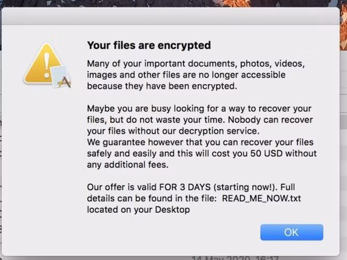 Công ty cổ phần An ninh mạng Việt Nam VSEC ngày 6/7 phát đi cảnh báo về một loại mã độc tống tiền mới, được phát hiện trên hệ điều hành Mac.
